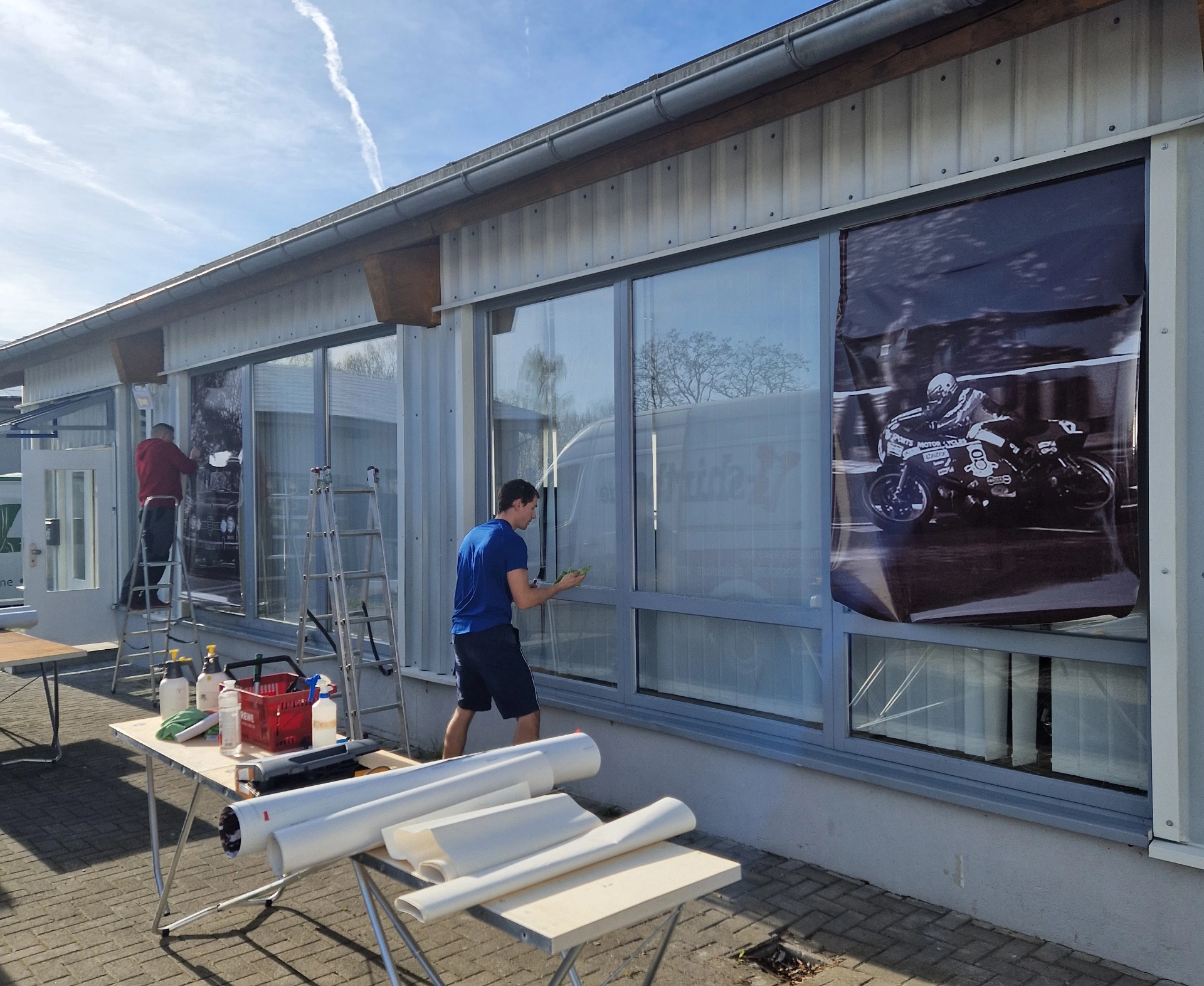 Unsere Fensterbeklebungen bieten nicht nur effektiven Sicht- und Hitzeschutz, sondern verwandeln auch Ihre Fassade in ein eindrucksvolles Werbemittel. Mit maßgeschneiderten Designs und hochwertigen Materialien sorgen wir dafür, dass Ihre Botschaft im besten Licht erstrahlt und gleichzeitig unerwünschte Einblicke verhindert werden.
